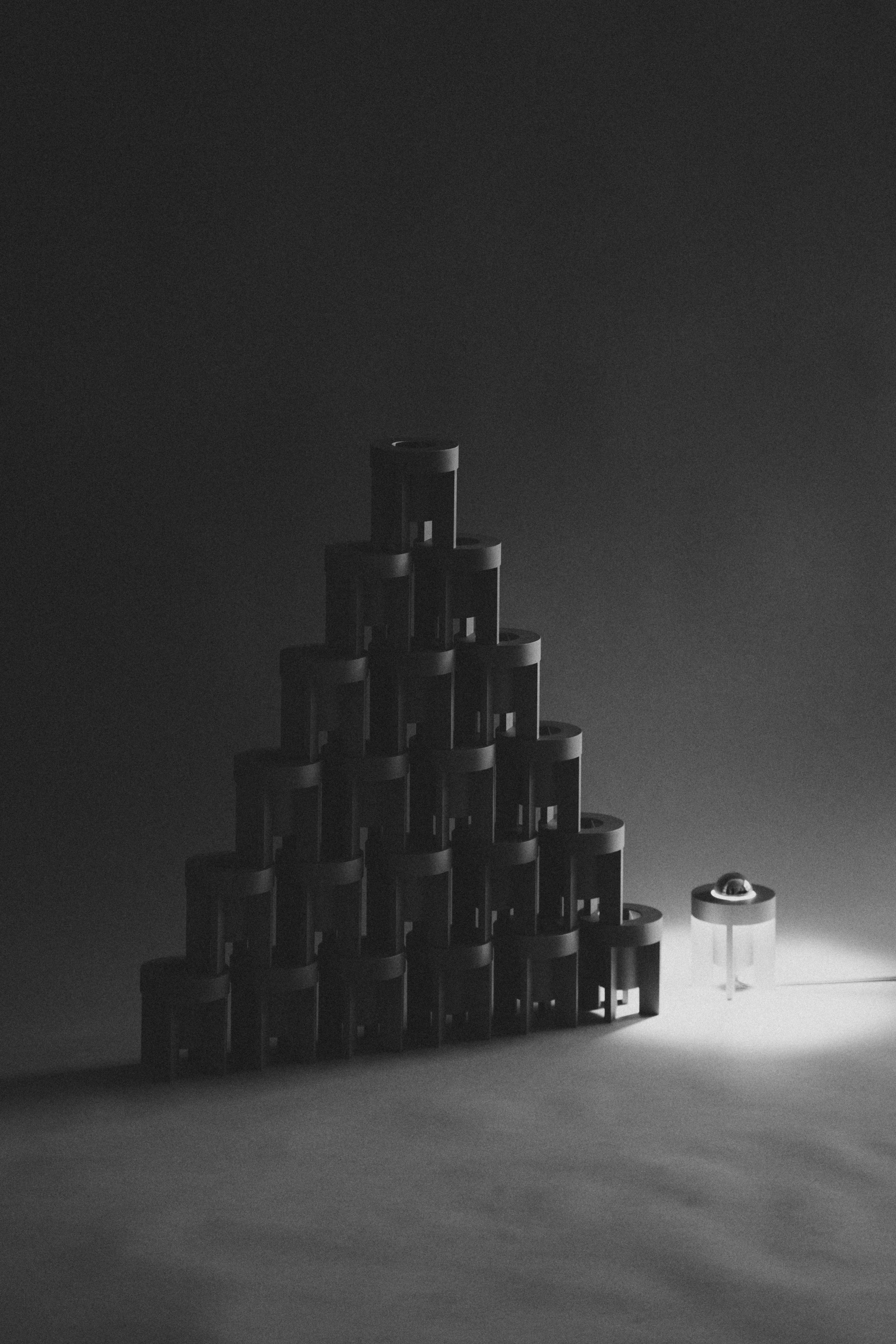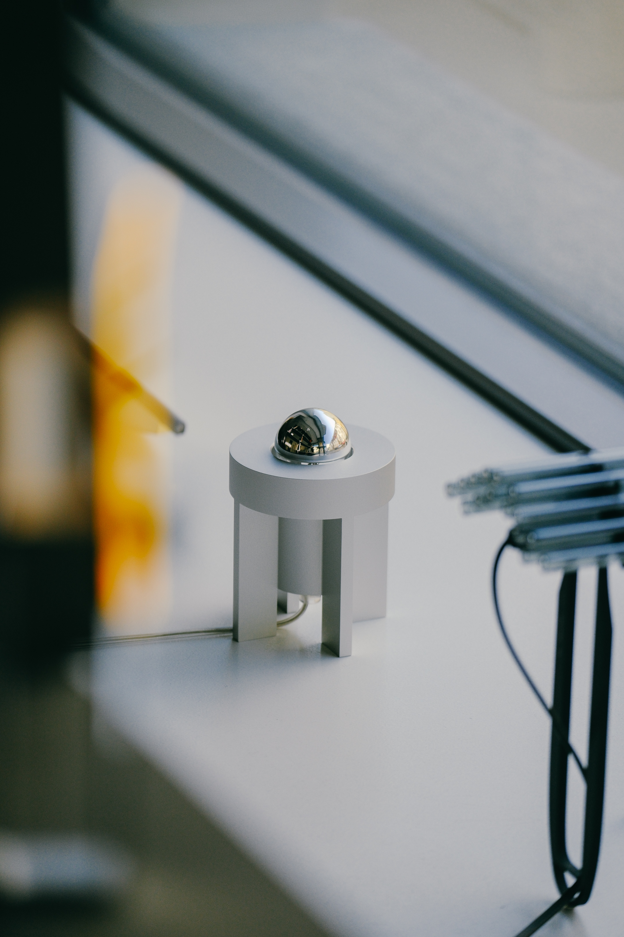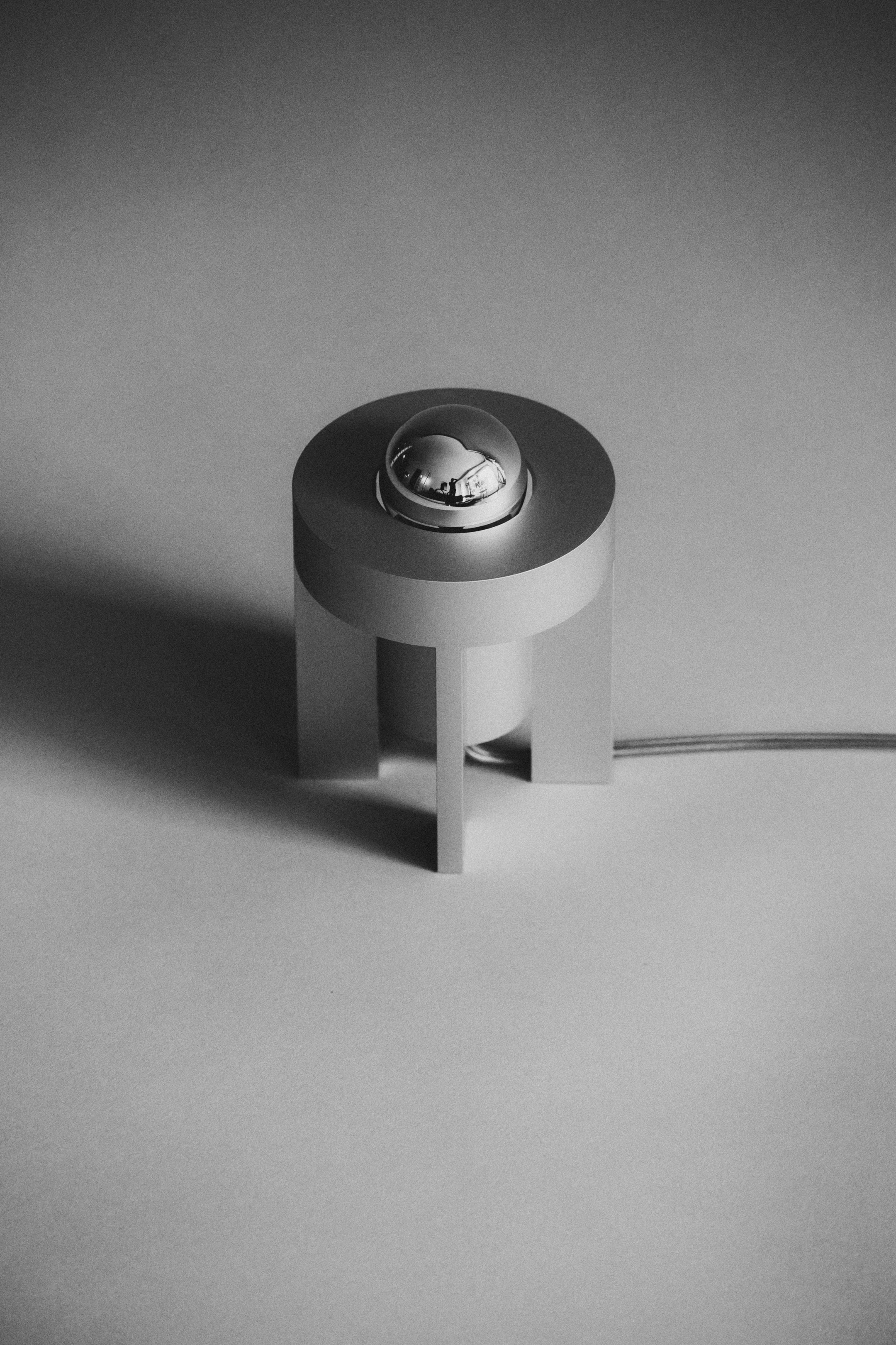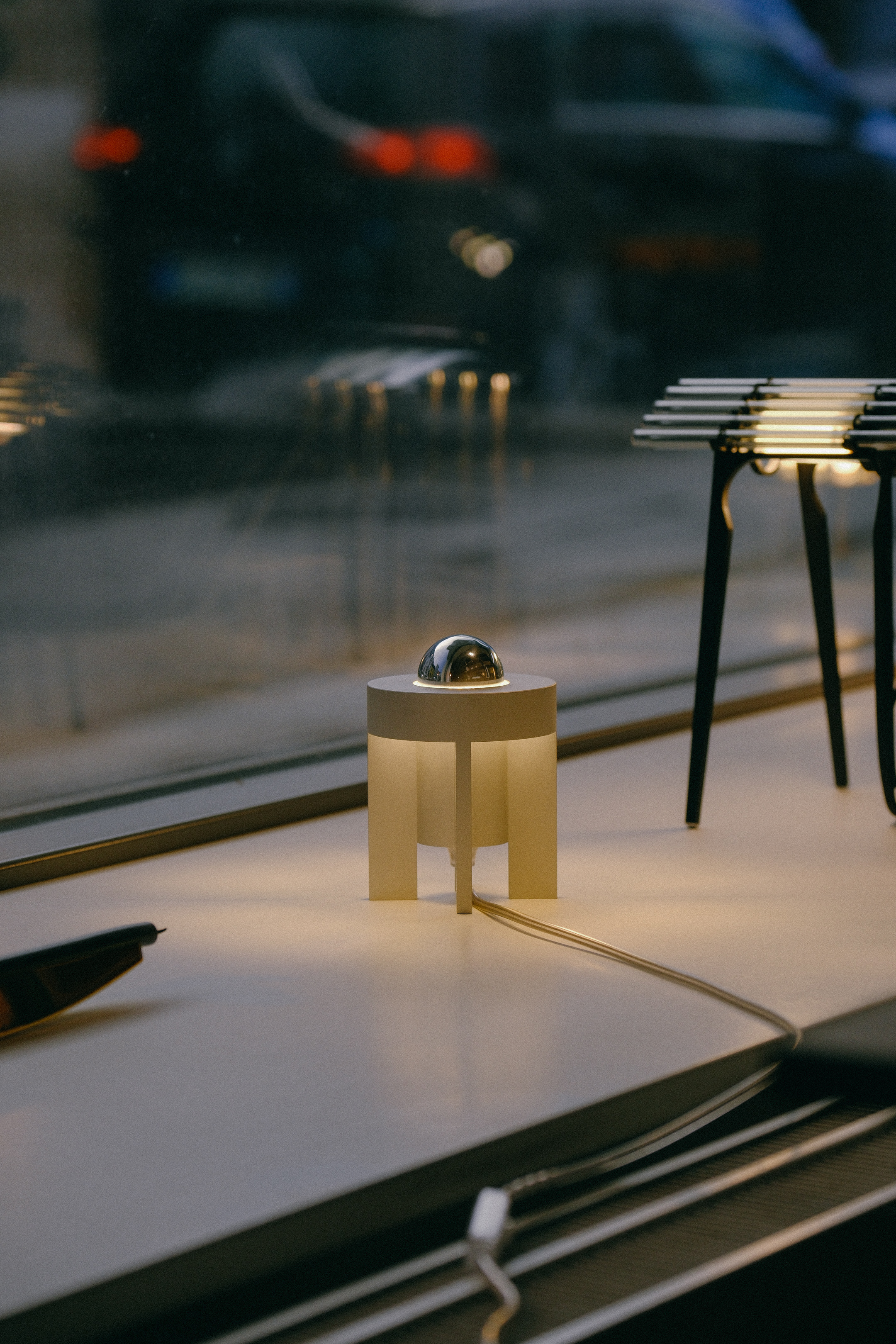 Cassini is a table lamp carved from a single block of aluminium. By directing the light downward through its core, the lamp creates a diffuse and indirect illumination.
