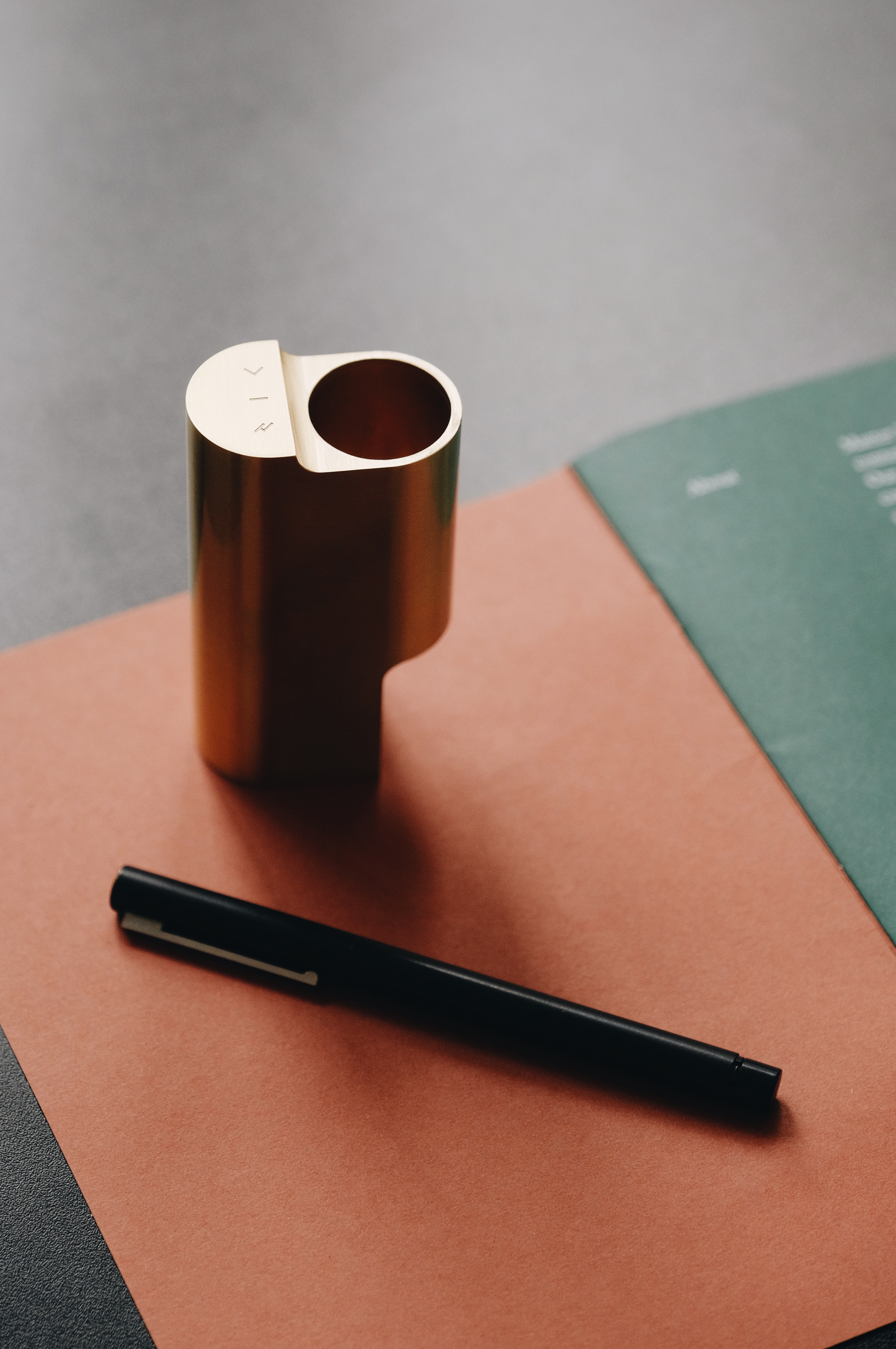 Espelma is a table lamp made of a single cnc brass element and a mirrored light bulb. The idea of the lamp is to create a minimum body while emphasizing the weight properties of massive brass to provide stability. With a height of only 95mm, the lamp weights 700gr. Like a handle, the design follows the fit of the hand, to be used very frequently and placed on any support, where the smallest space is available. The lamp is called espelma, contemporary interpretation of the candle, only made possible with the recent introduction of non-heating led light bulbs.