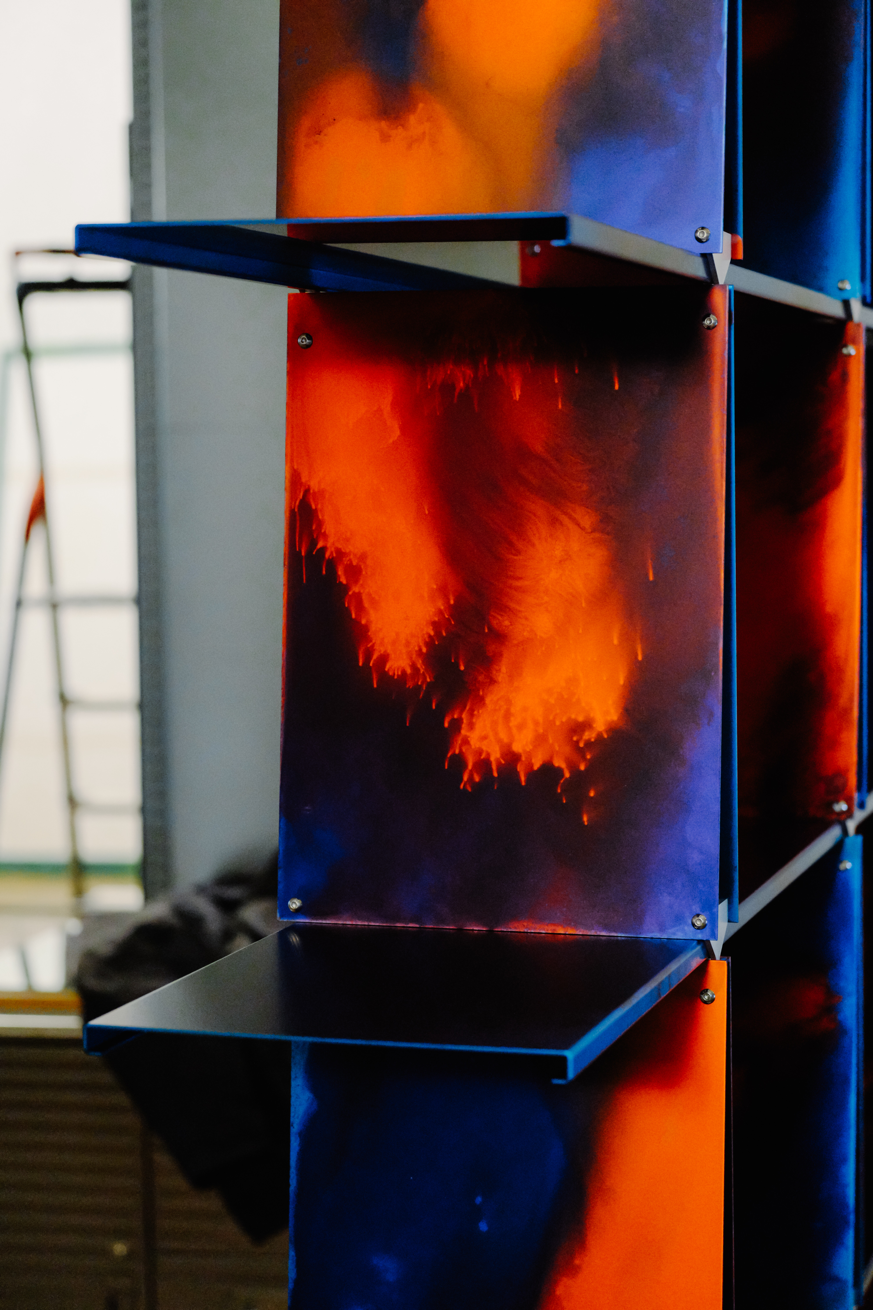 On the occasion of the 2024 Zurich Design Week, Raw Senses unveils a collaboration between designer Raphael Kadid and BWB with a special version of the Philae bookshelf, crafted entirely from aluminium. This edition draws inspiration from aerial photographs of aluminum mining sites, transforming these views into abstract landscapes. Hand anodising allows the colour to spread unevenly, creating a topography on the surface of the material. Like a canvas, the bookshelf becomes a reflection of its mineral origins.